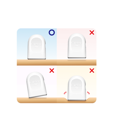 세이프티 캡을 제거한 뒤, 센서를 부착할 부위에 어플리케이터를 수평으로 놓아주세요.