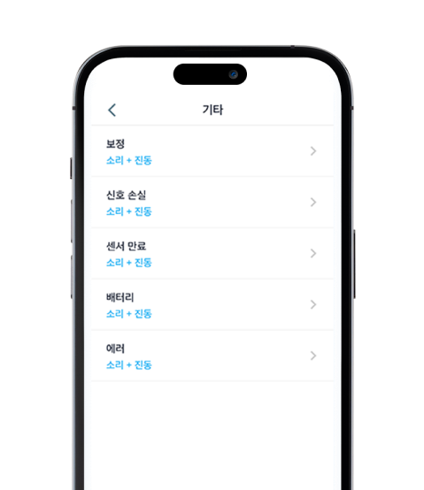 기타 알림에서는 보정 알림, 신호 손실, 센서 만료 등 알림 여부를 설정할 수 있습니다.