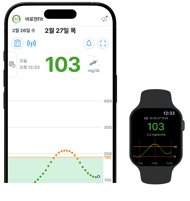 혈당값의 정도를 시각적으로 확인 할 수 있습니다.